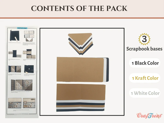 CrafTreat - Blank Precut Album Base - TriFold Folio Wallet: Black & Kraft