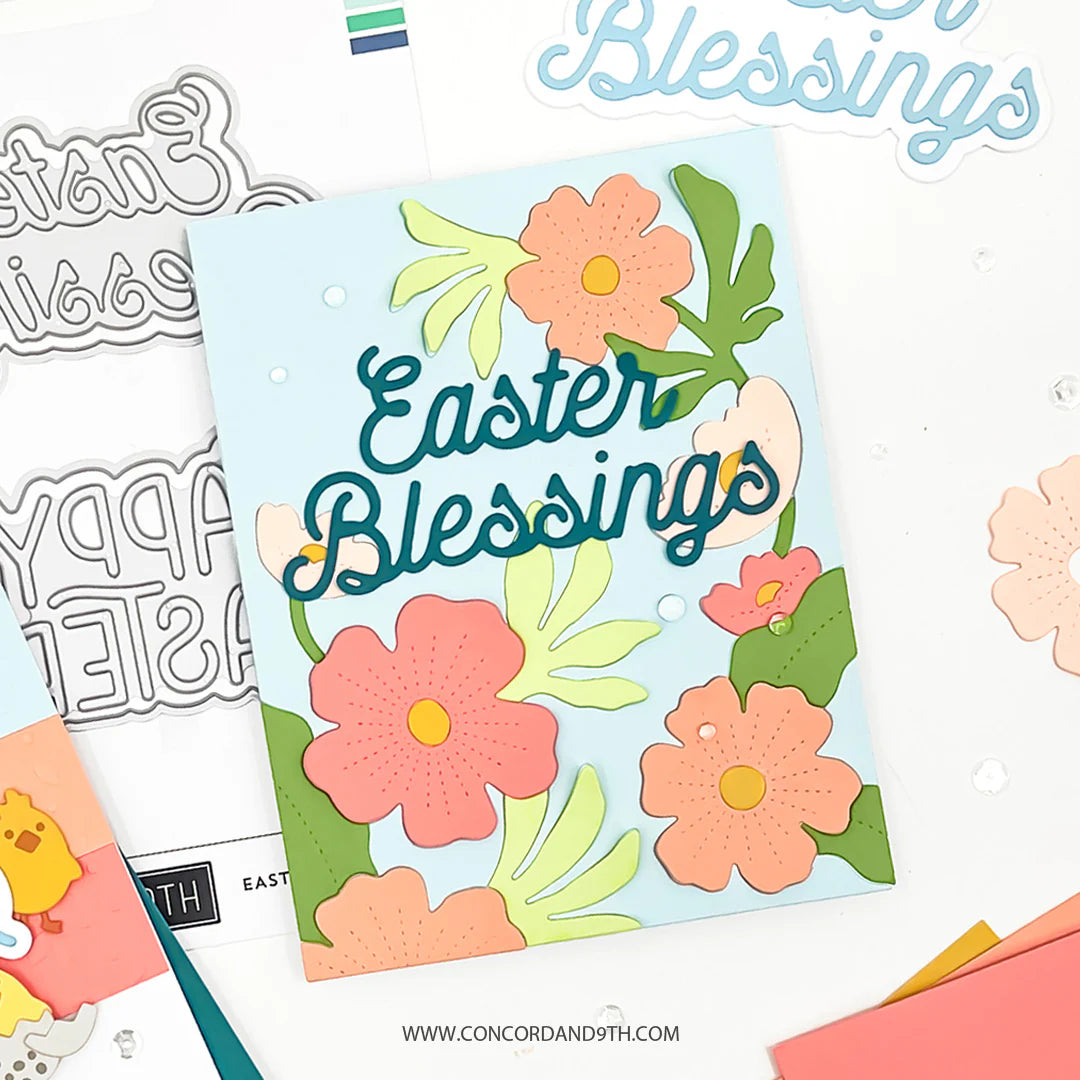This spring, send happy thoughts and well wishes with the Easter Greetings Dies! Each sentiment has its own style and comes with both a die to cut out the phrase and a die to back the greeting. 4 pieces.