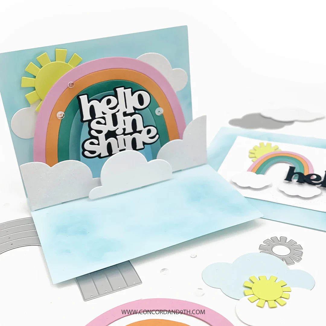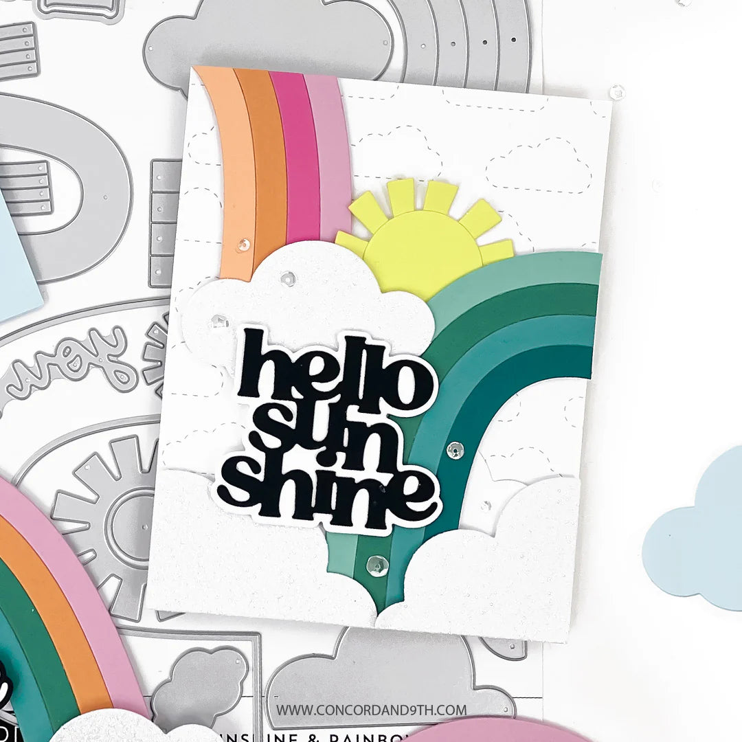 Layer color, add clouds and brighten days with the Sunshine & Rainbow Dies! This set includes base pieces for both a large and small rainbow, along with dies to cut out the stripes for easy assembly. Pro tip: start gluing from the outer arch for easiest alignment! There are also clouds that nestle in the corners and along the base of your card, another big, fluffy cloud that can float wherever you’d like, and of course dies to create the sun. The full rainbow fits horizontally on an A2 card, or it can be trimmed to fit any layout—horizontal, vertical, or popped up on the inside! 16 pieces.