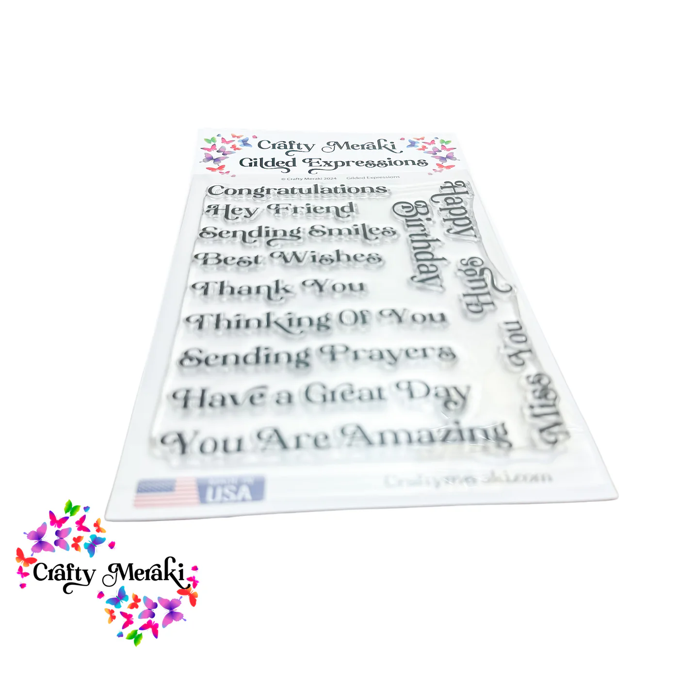 Enhance your gift-giving game with the Crafty Meraki Gilded Expression Stamp Set. With its versatile basic lines, this stamp can be used to congratulate, celebrate birthdays, send wishes, and greet friends. Each line has a unique meaning, adding a special touch to your cards. Elevate your gifting experience with this set.