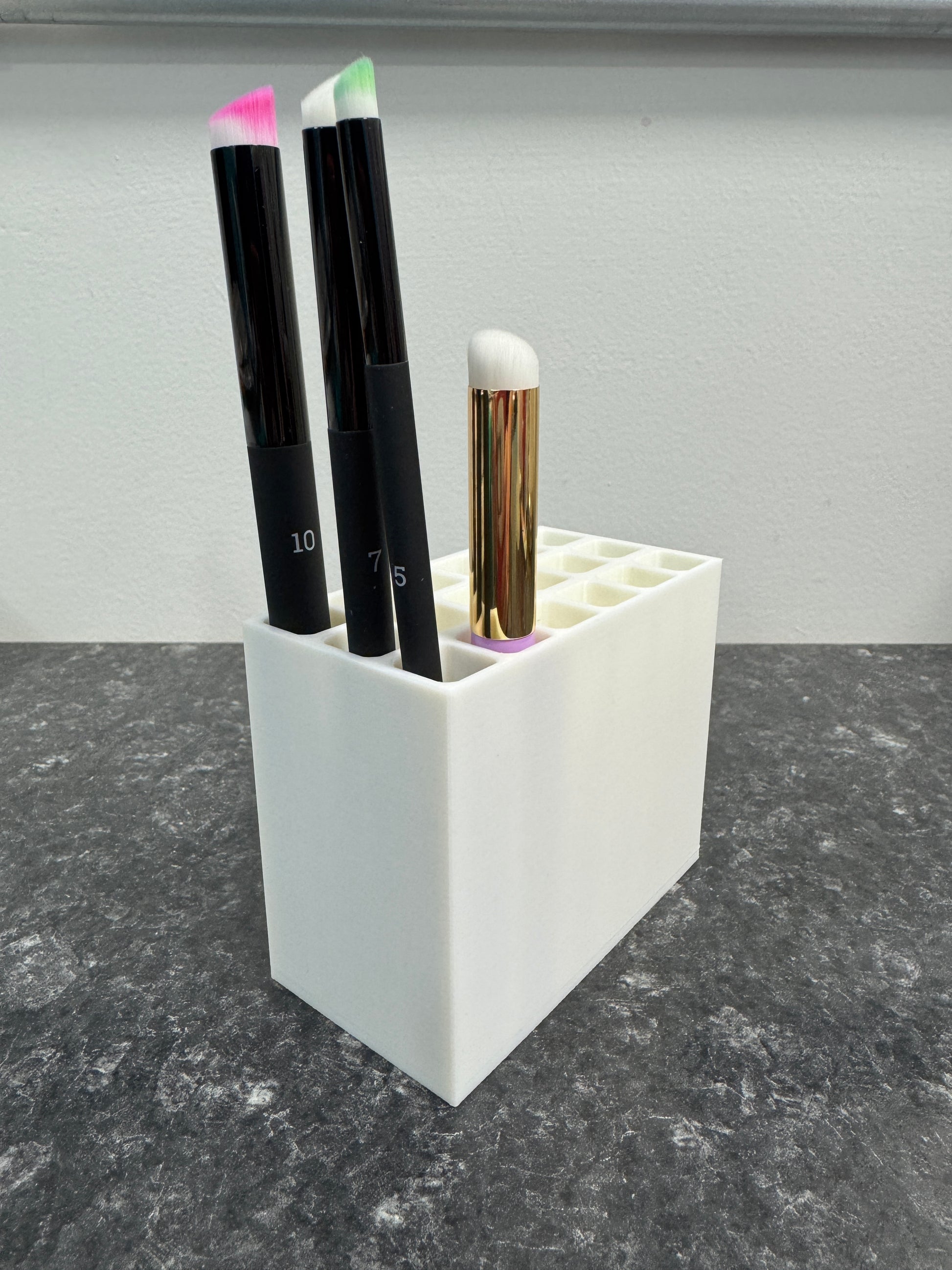 Made to hold your round blending brushes up to 0.5" in size all in one place, ready to go and out from under the crafty chaos of your desk. Holds 18 brushes.