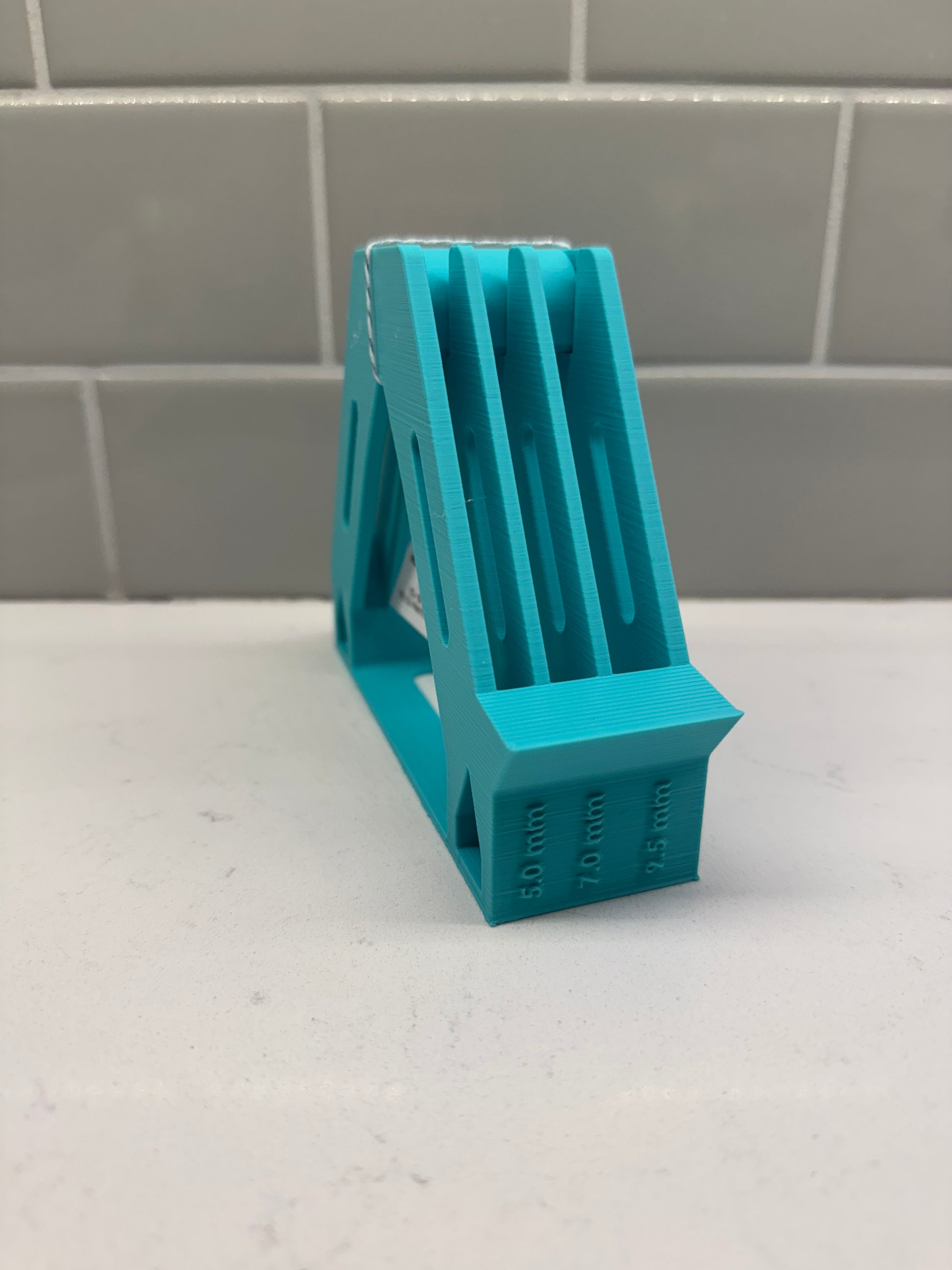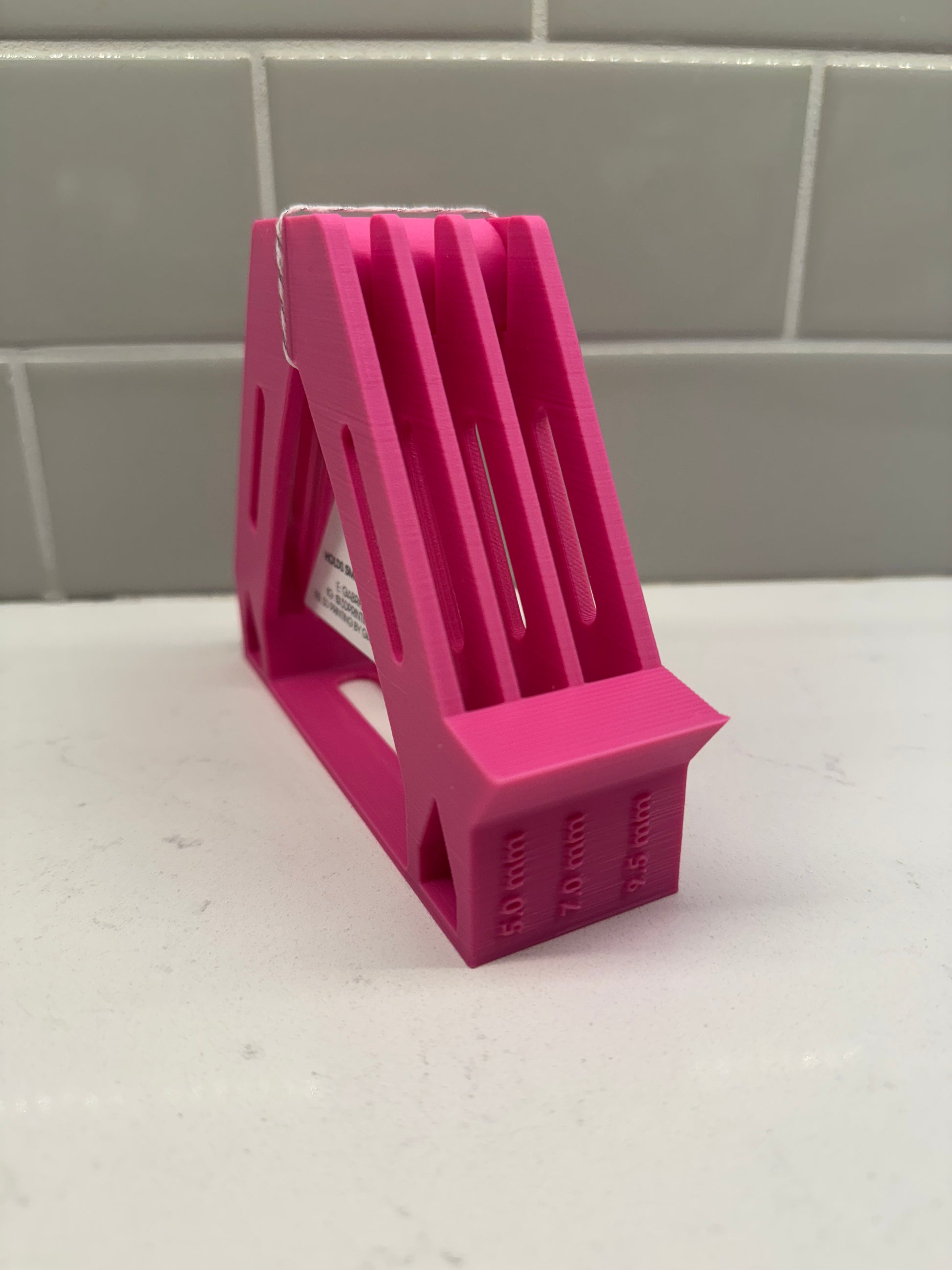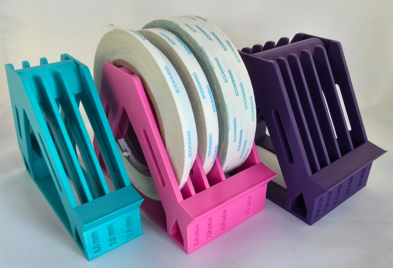 Holds 5mm, 7mm and 9.5mm rolls of tape.