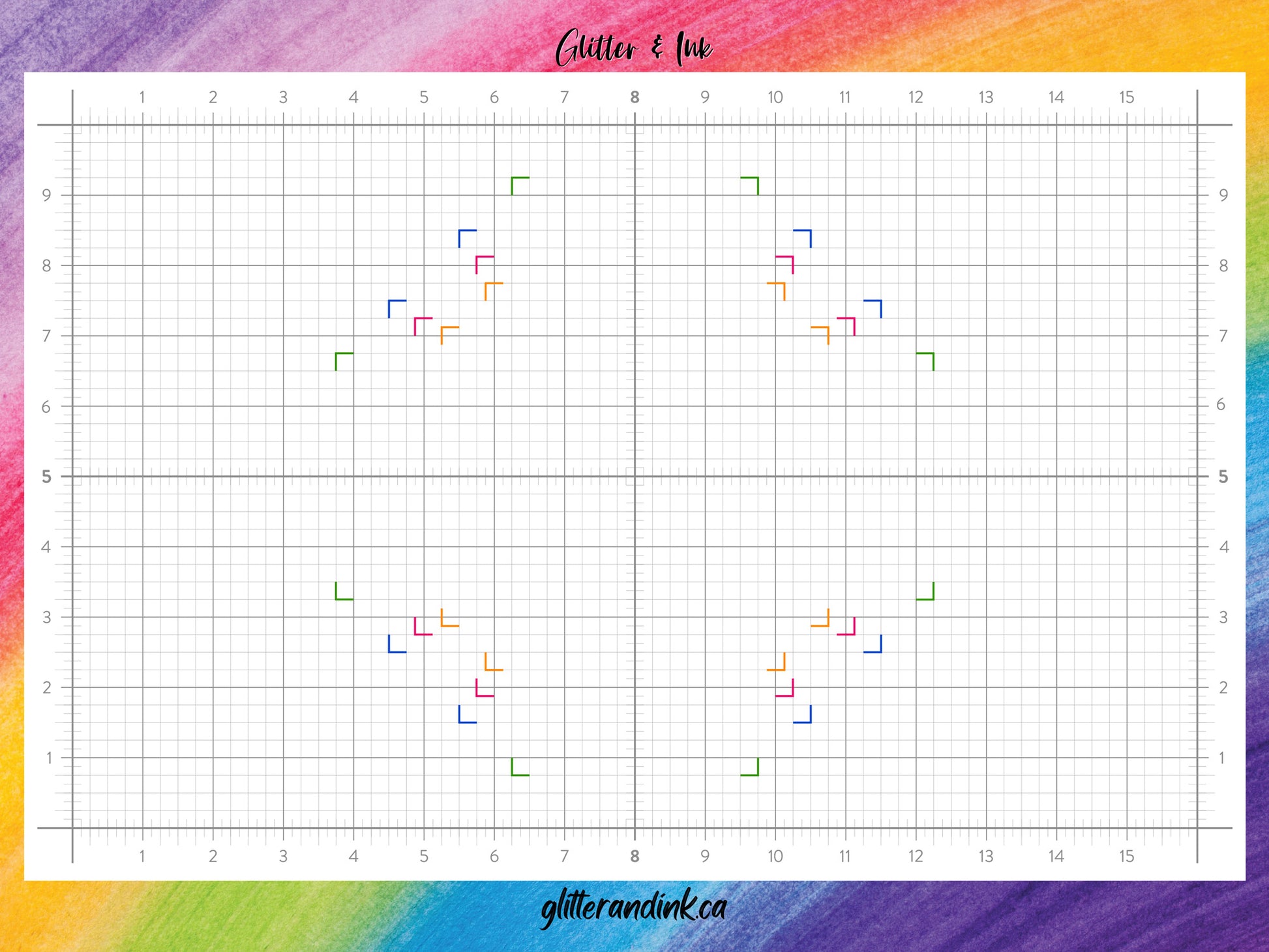 Glass surfaces are ideal for crafting and mixed media art. They’re quick to clean, heat resistant, and stain-proof, making them perfect for mixing various mediums directly on the board. The heat resistance supports techniques like heat embossing, while the metal backing creates a magnetic surface for securely holding paper, stencils, fabric, and more with rare earth magnets. The integrated grid includes 1-inch and 1/4-inch increments, 1/8-inch tick marks along the border and centerlines, and corner guides for classic card sizes.