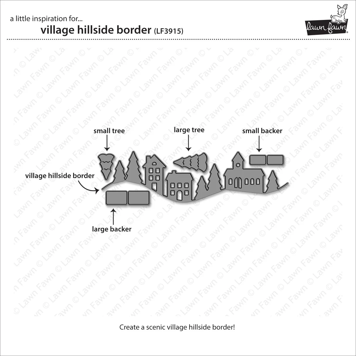 Add a hilly dimension to your projects with this sweet village border. Change the look and season of the village by using different colour cardstock for the pine tree and window backers.