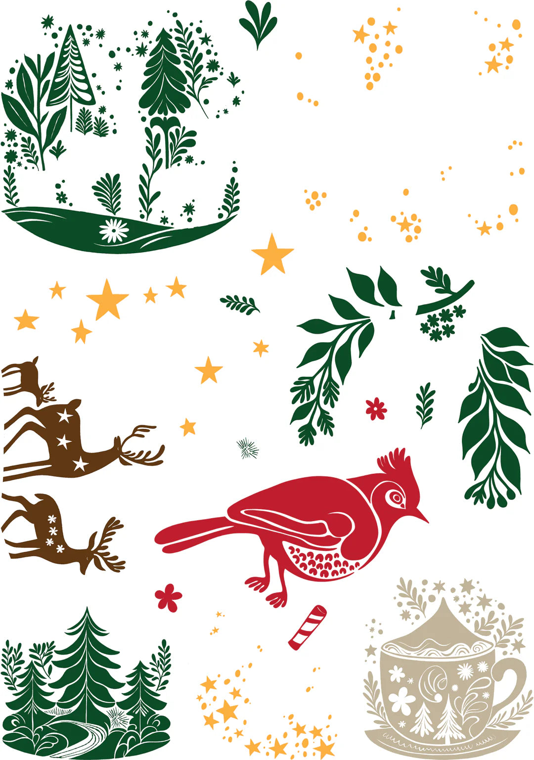 This versatile stamp set brings the magic of the winter season to your crafting projects with its delightful array of festive designs. Capture the joy of the season with beautifully designed stamps that inlay together to create iconic holiday elements such as a cheerful cardinal, a majestic reindeer, and a comforting mug of cocoa.