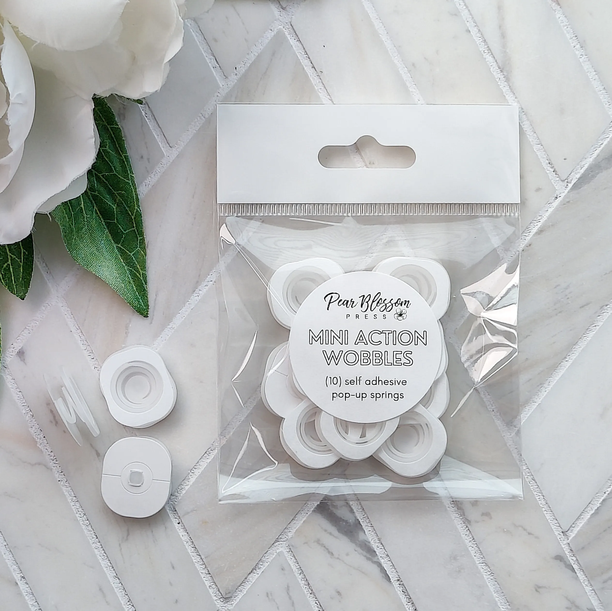 Ten pack of Action Wobble Springs, available in regular and mini sizes. Use these self-adhesive springs to add motion to your handmade cards and paper crafts! Includes 10 Mini Action Wobbles that measure approximately ⅝″ x ¾″ (about the size of a nickel).