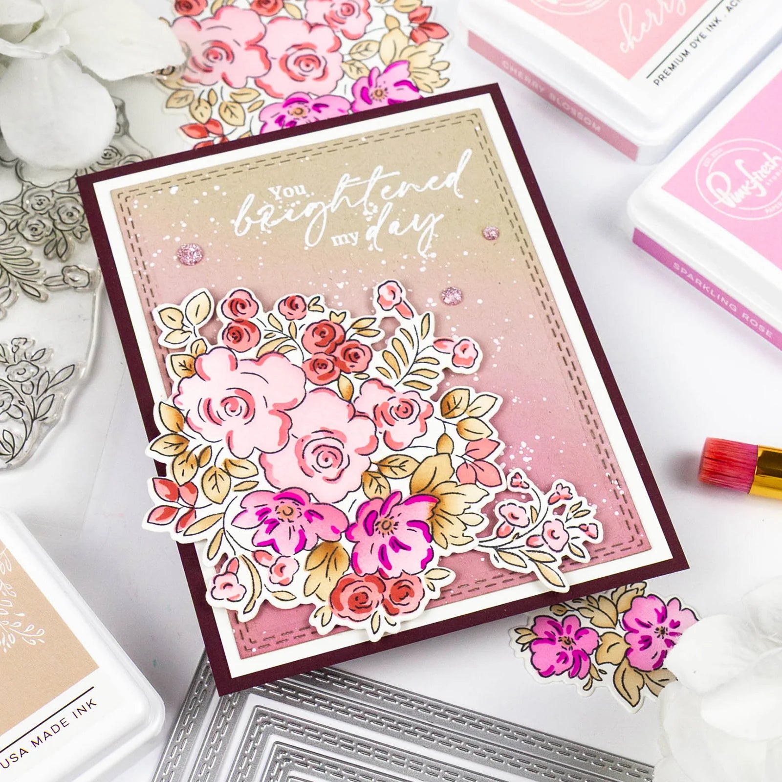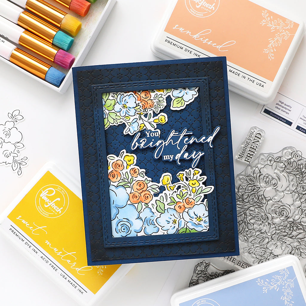 Use our innovative, one-piece dies to cut every design in one pass, giving you more time to create! The stamp set contains two stamps with all the various floral images. The washi tape contains all images in a single panel—simply align both dies on the panel and die cut every image in one pass. This die set includes a hidden magnet within the packaging that keeps the multiple pieces of the die in place.