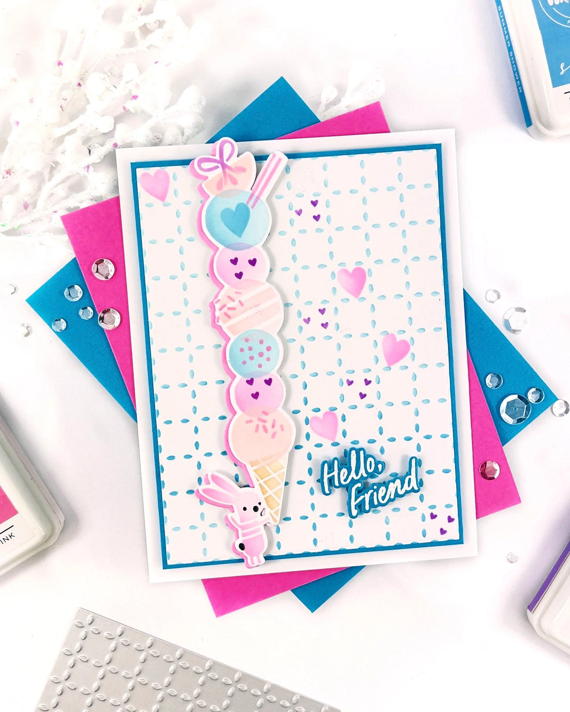 Features a delicate grid pattern made from petal shapes. Use it to add subtle texture to any card.