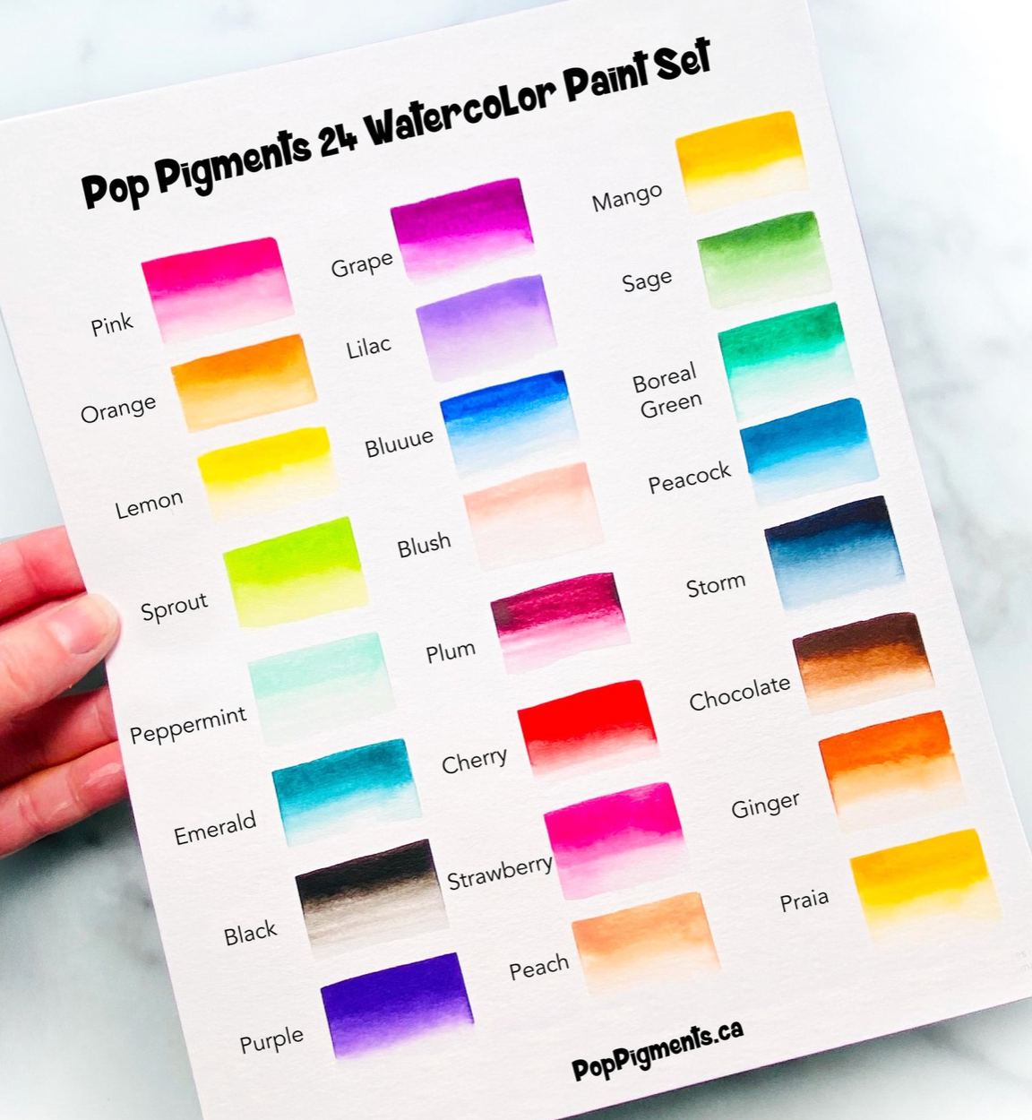 Dare to use vibrant watercolors with this selection of Isa's signature blends! Pop Pigments watercolor paints are all handmade in Canada, with the best ingredients. Period. They are lightfast, extra fine, creamy, as saturated as they can be and really satisfying to paint with.