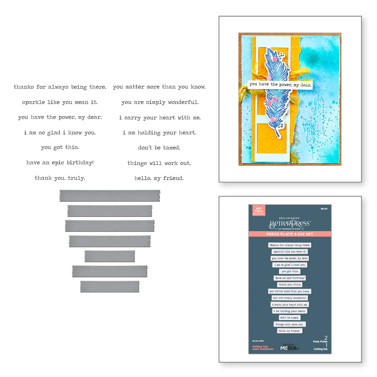 Spellbinders - BetterPress - Holding Your Heart Sentiments Press Plate & Die Bundle
