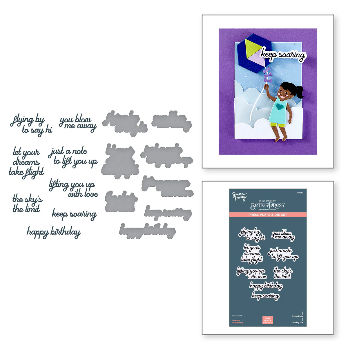 Spellbinders - BetterPress - Soaring Sentiments Press Plate & Die Bundle by Simon Hurley