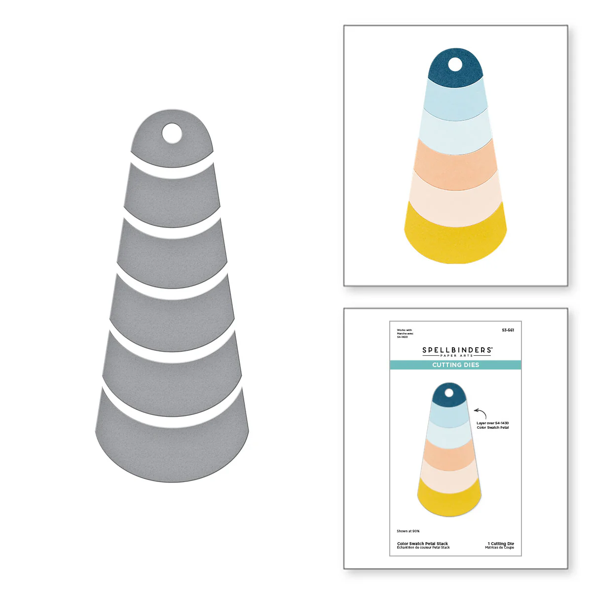 Color Swatch Petal Stack Etched Dies work with the S4-1430 Color Swatch Petal Etched Die Set which acts as the base for when you adhere the stack on top for a complete look.