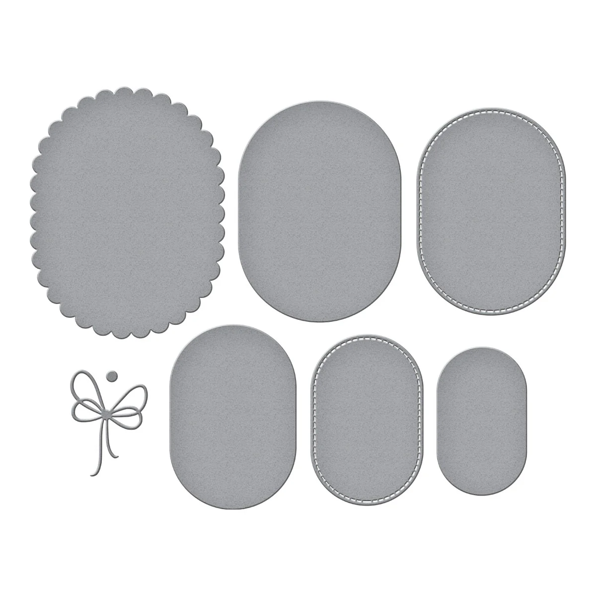 Scallop and Stitched Edge Ovals Etched Dies are from the Wildflowers Collection by Lisa Horton. The set of seven thin metal cutting dies includes a large scalloped edge oval, two stitched edge ovals, standard ovals, and a sweet bow. Cut to anchor a design or nest some of the ovals to create frames. Accent any project with the bow in the set. Many design options with this set!