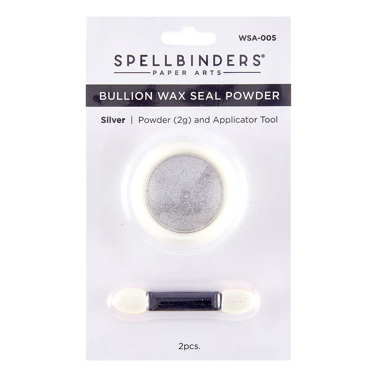 Silver Bullion Wax Seal Powder is a fine grade metallic press powder that helps highlight the raised design in the wax seal. It comes in a 2g container and an applicator tool. After the wax seal is made and cooled, apply the Bullion Powder with the applicator over the raised area for a touch of elegance!