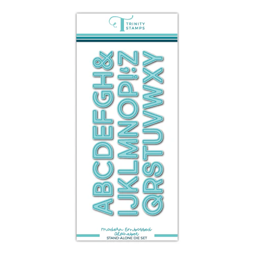 This Modern Embossed alpha die set includes the entire alphabet along with 4 punctuation dies. Each die features a debossed border.