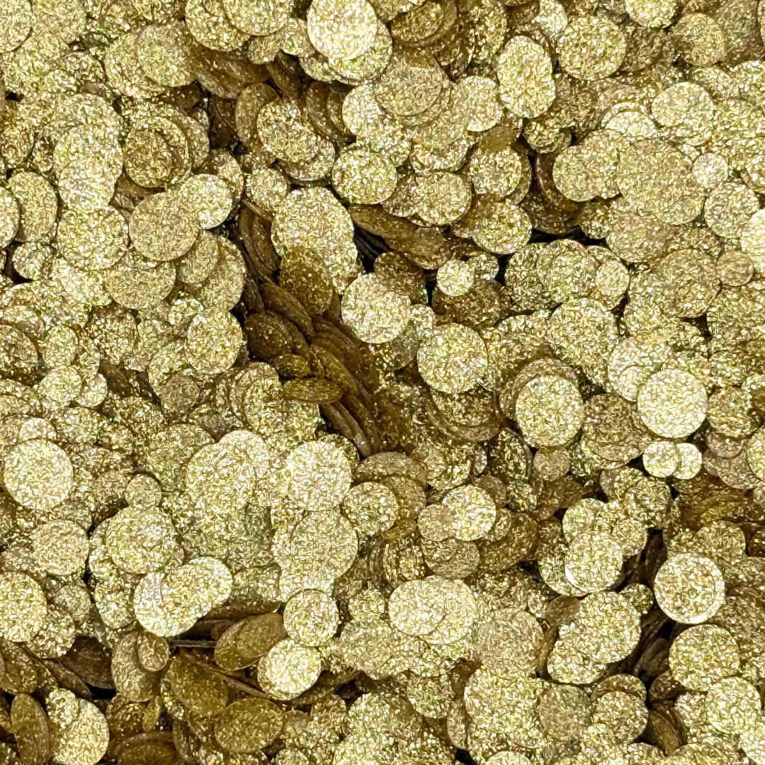 This Confetti mix contains three sizes of flat confetti (4mm, 6mm, & 8mm) that sparkle with real glitter.