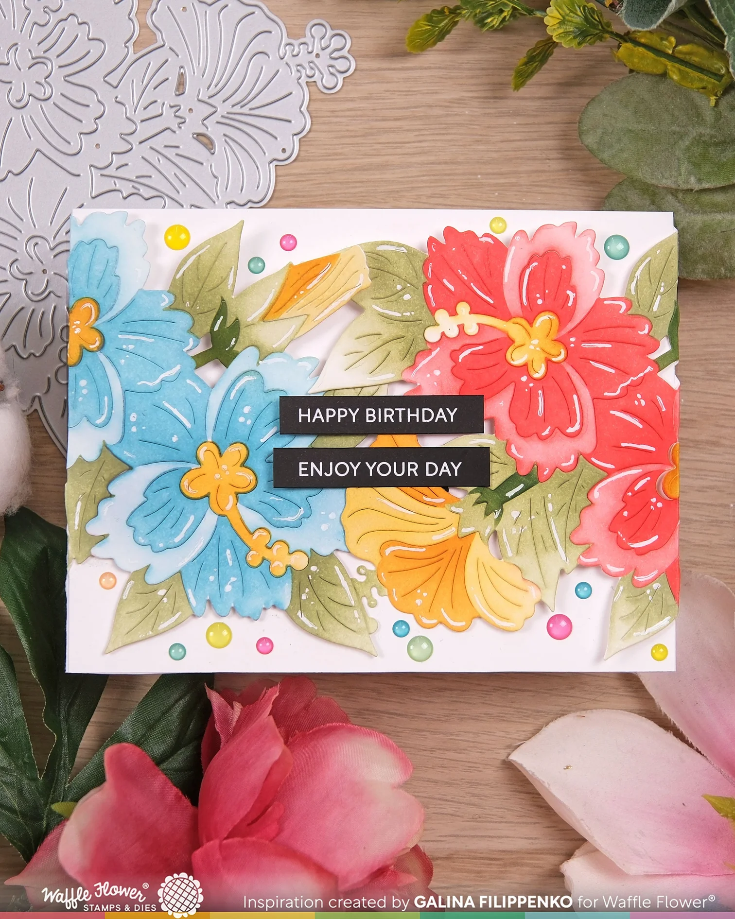 Designed to coordinate with the Hibiscus Cluster Die, this stencil helps you add smooth shading and vibrant color to the flowers and leaves. Use your favorite inks to bring the design to life before layering the flower centers on top.